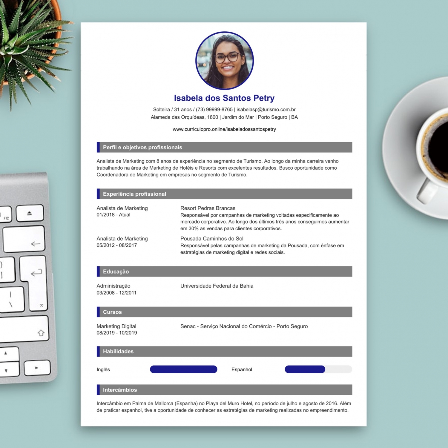 Tire vantagem das suas habilidades pessoais! Você pode sintetizar essas habilidades no topo do seu currículo, na seção de Perfil e Objetivos Profissionais, assim como incluir na seção específica de Habilidades. Lembre-se: seja apenas você mesmo e valorize características que realmente se destacam no seu perfil.